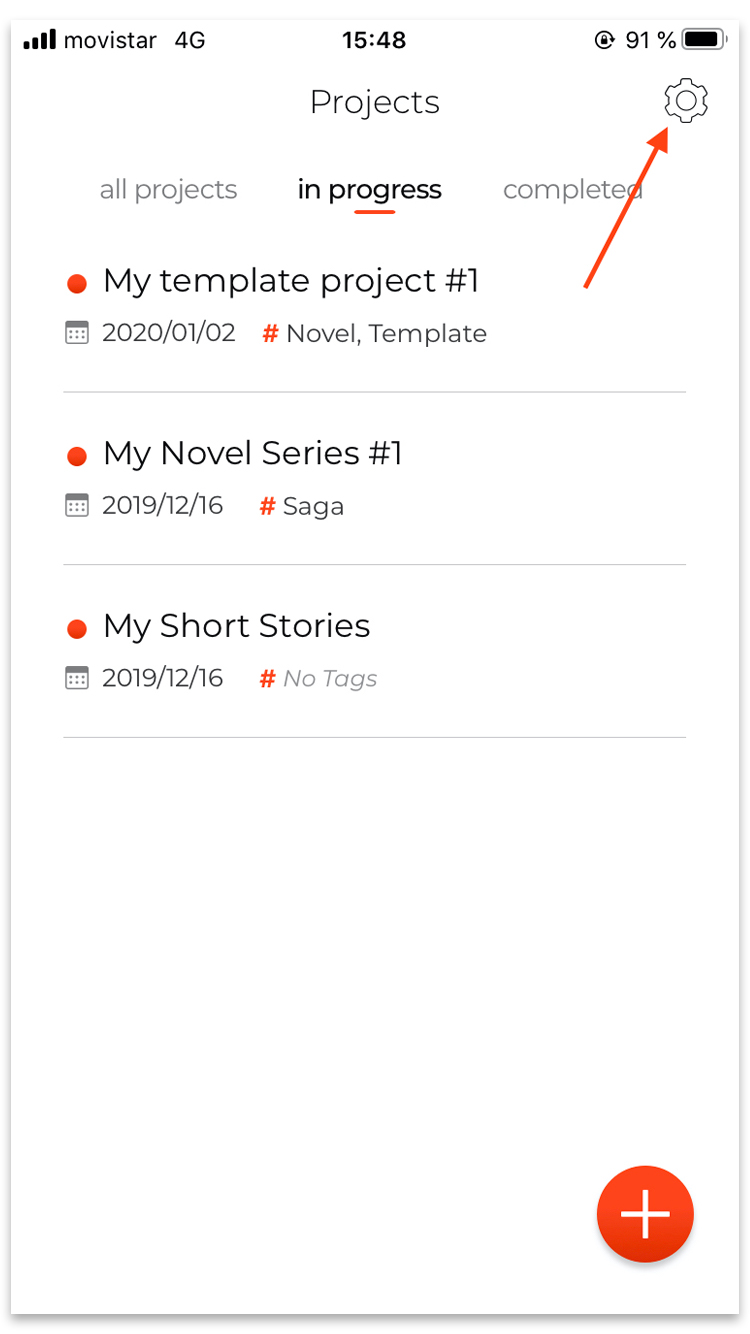 Just open the project you want to export and tap the icon in the upper right of the screen: